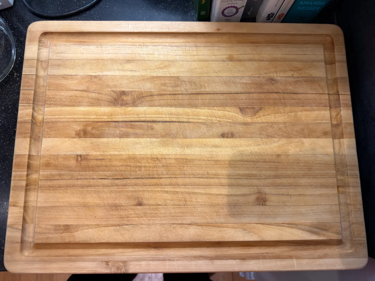 For a cutting board, that’s up to you to make your own decision. I’d recommend skipping any cheap plastic ones and going straight to the big teak boards. They’re not THAT expensive and really give you a great prep surface if you’re strong enough to throw them around.